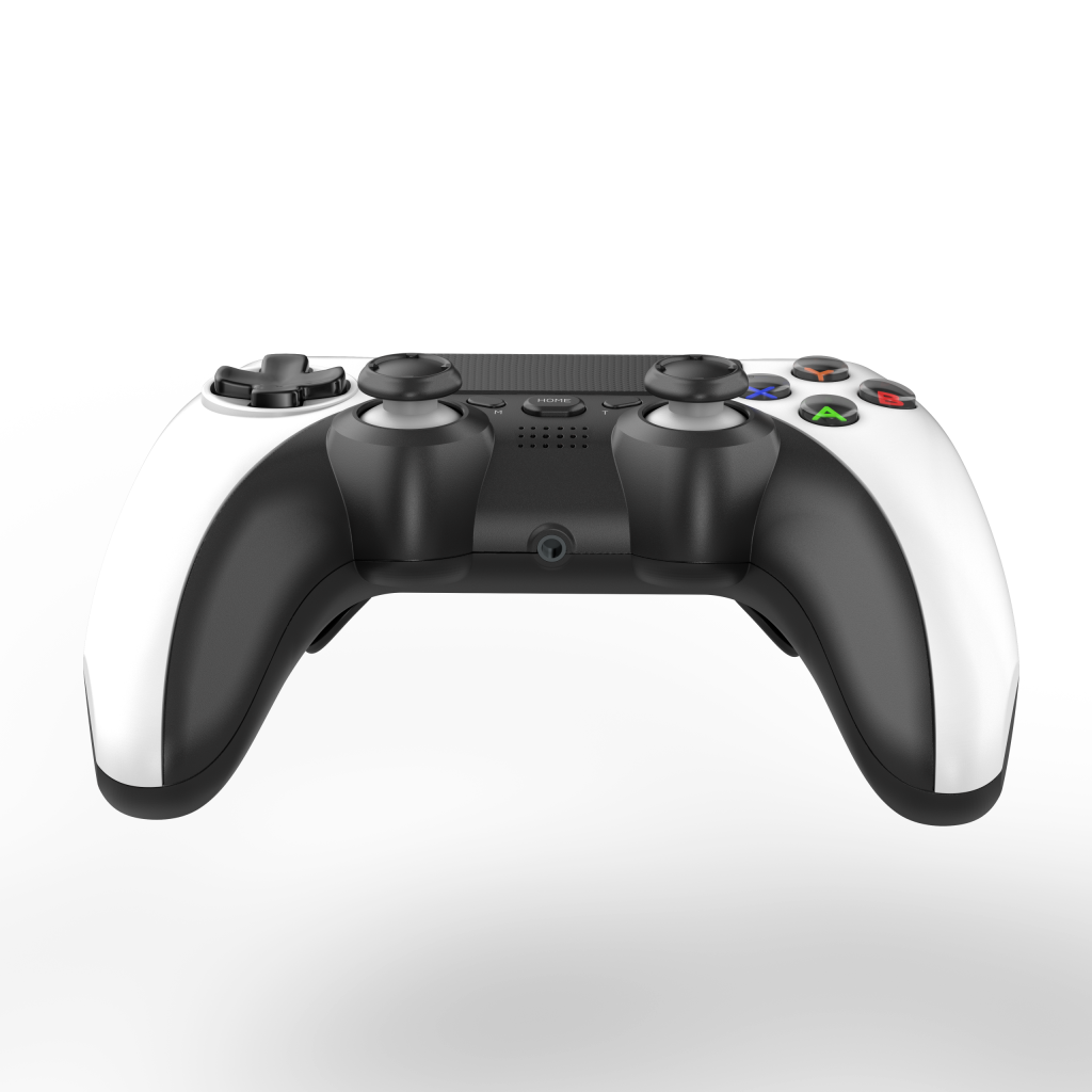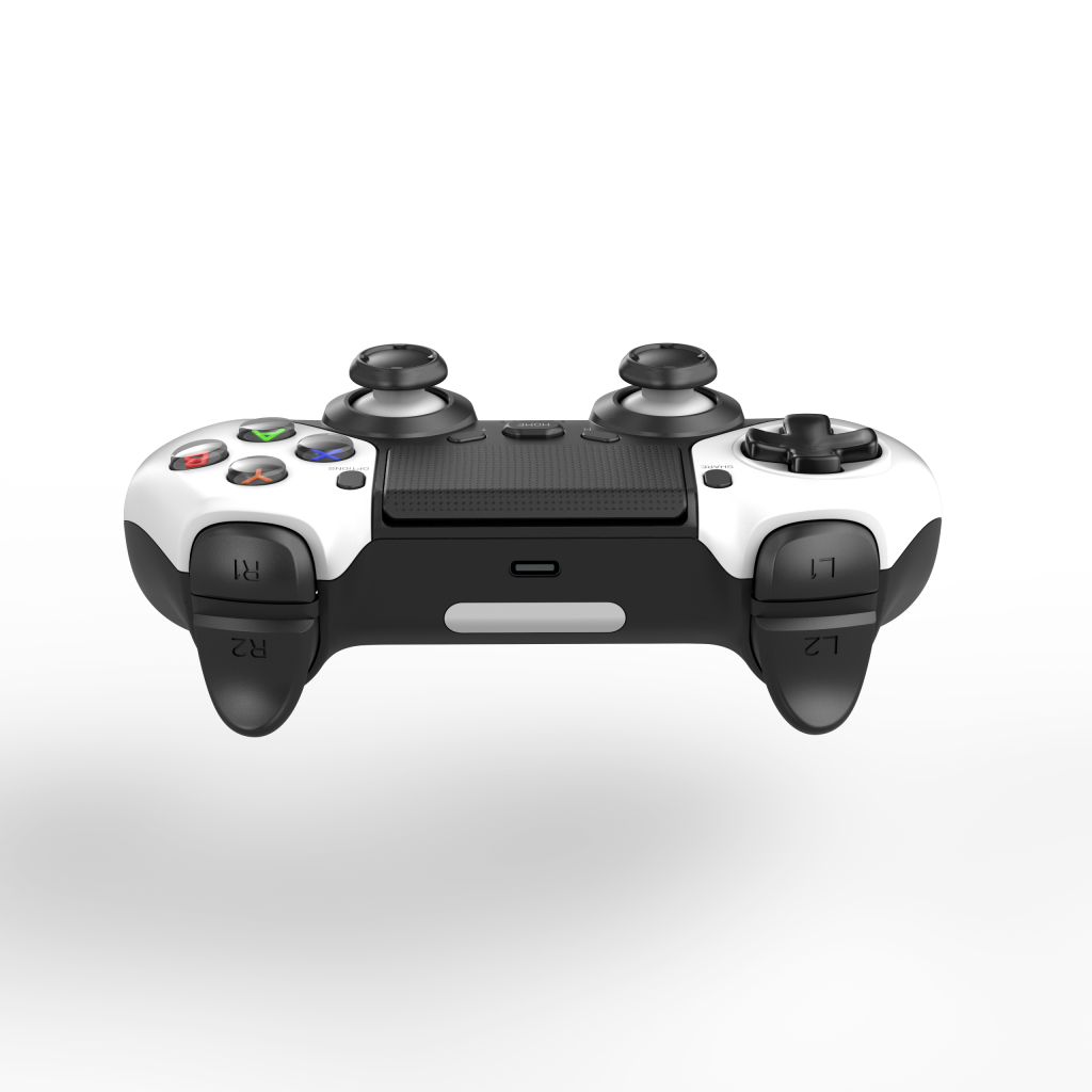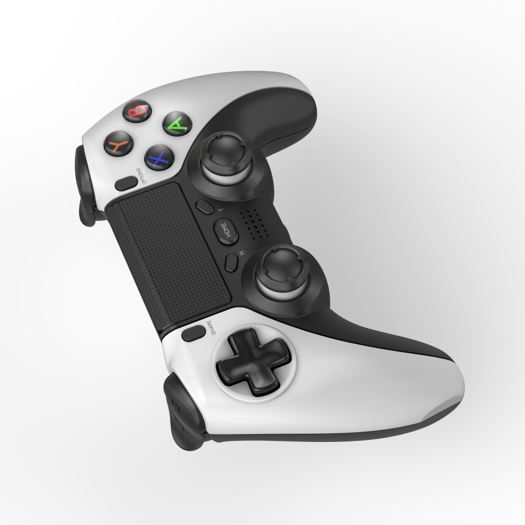 TG 159W با بدنه سفید و براق (پلاستیک تزریقی ABS) و طراحی شبیه دسته PS5، نهتنها چشمنوازه، بلکه تو دستت مثل یه رویا میشینه. با ابعاد 155x102x62 میلیمتر و وزن فقط 240 گرم، این گیمپد از دسته PS4 (DualShock 4) خوشدستتره و ساعتها بازی کردن باهاش خستت نمیکنه. نورهای رنگارنگ (LED) روی دکمههای اصلی ( مثلث، دایره، مربع، ضربدر) حس و حال ستآپ گیمینگت رو به یه تورنمنت جهانی میبره. D-pad قابل تعویض هم بهت اجازه میده دسته رو به سبک خودت شخصیسازی کنی، درست مثل گیمپدهای حرفهای