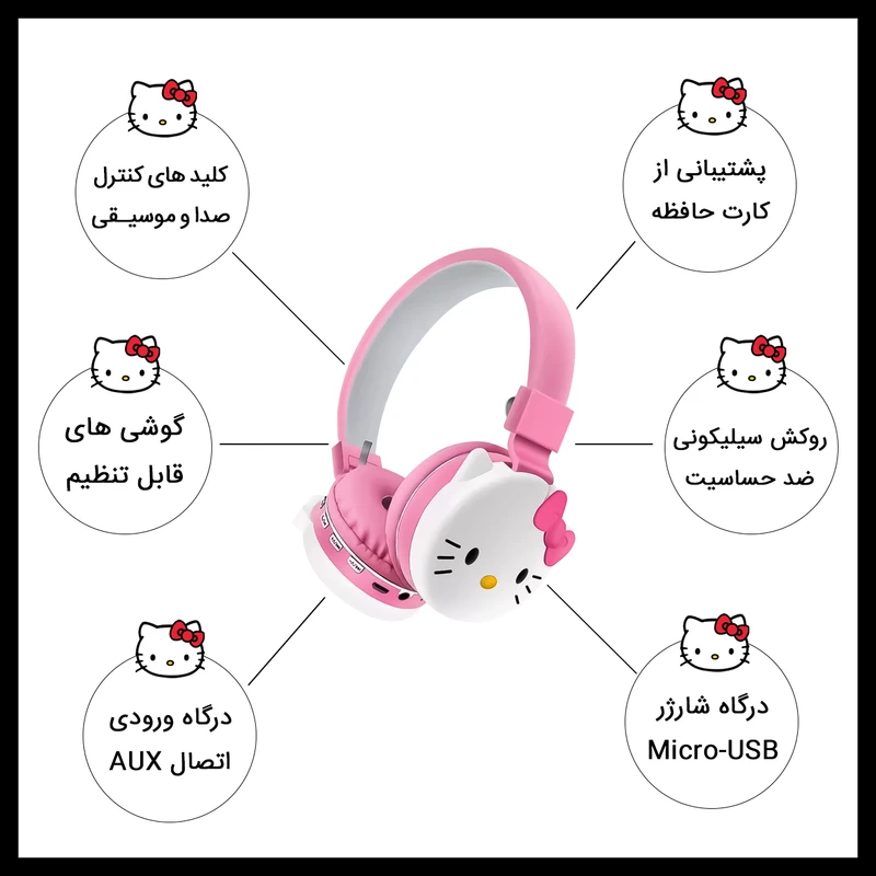 هدفون بلوتوثی کیتی AH-806D دارای طراحی ارگونومیک و شکیل است و جنس پوشش روی کاپ صدای این محصول از چرم مصنوعی است که باعث میشود هنگام استفاده بلندمدت از آن احساس خستگی به کاربر منتقل نشود. رویه سیلیکونی و ضد حساسیت گوشی ها به طرح کیتی بوده که هلو کیتی یکی از شخصیتهای کارتونی محبوب است که توسط شرکت Sanrio خلق شده است. این شخصیت دختربچهای با گوشوارههای بزرگ و شنل قرمز است که با لبخندی دلنواز بر لب، معروف شده است. هلو کیتی به عنوان نمادی از بیگناهی، شادابی و دوستی شناخته میشود و در سراسر جهان طرفداران بسیاری دارد.