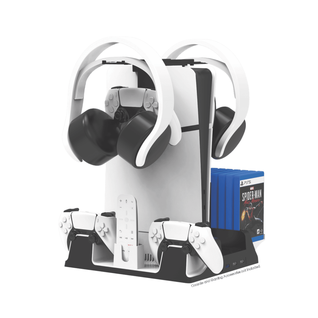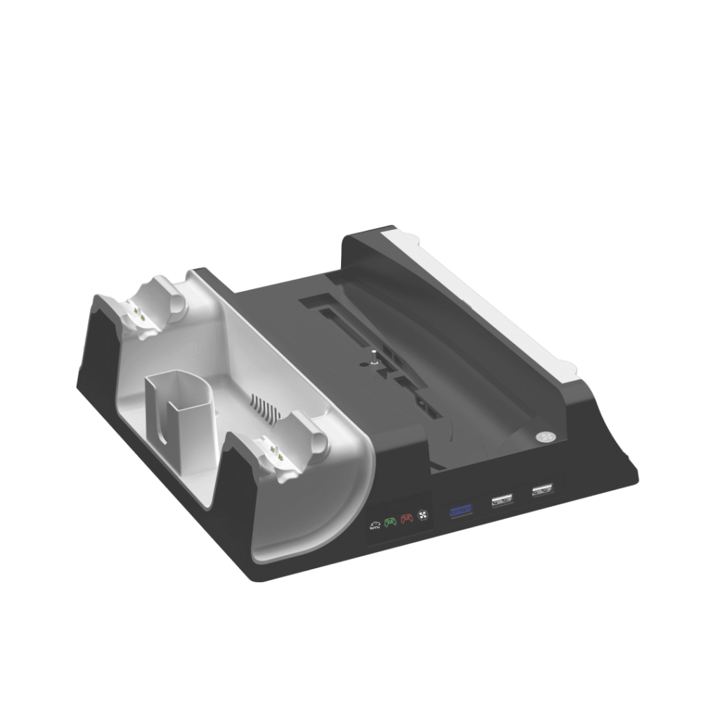 با بدنه پلاستیک ABS، وزن 840 گرم، و ابعاد 27.3×23.5×6.5 سانتیمتر، TGS20 مثل یه دژ محکم برای PS5 (بهجز مدل پرو) ساخته شده. رنگهای مشکی و سفیدش انگار از دل دنیای PS5 دراومده. جای 2 هدست، ریموت، و 14 دیسک بازی، مثل قفسههای یه کتابخونه جادویی، همهچیز رو مرتب نگه میداره. پد ضدلغزش زیرش، این پایگاه رو روی میزت ثابت میکنه.