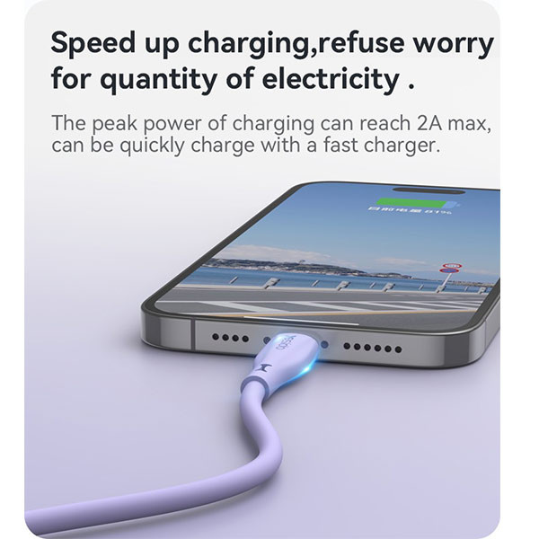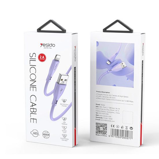 این کابل سیلیکونی آیفونی یسیدو YESIDO CA119 به طول 100cm با روکشی سیلیکونی با قابلیت شستشو بدنه با این که بسیار نرم و لطیف و منعطف است اما به دلیل کابل مسی ضخیم بسیار محکم و مقاوم است و تا 10kg را تحمل میکند با خروجی شارژ سرعت بالا تا 2 آمپر است و قابلیت انتقال اطلاعات تا 480 mbps را دارد.