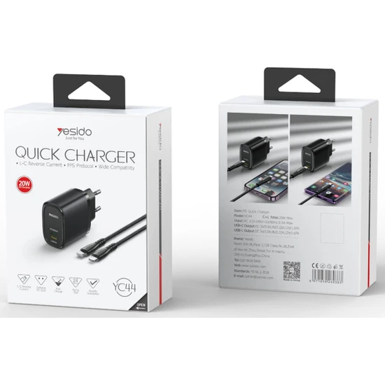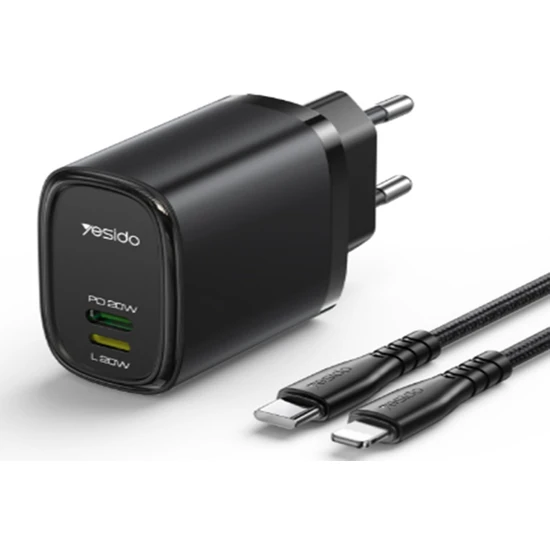 آداپتور شارژر 20W یسیدو مدل YC44 + کابل TypeC/Lightning