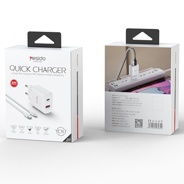 ویژگی ها آداپتور شارژر 20W یسیدو مدل YC50 + کابل TypeC/TypeC